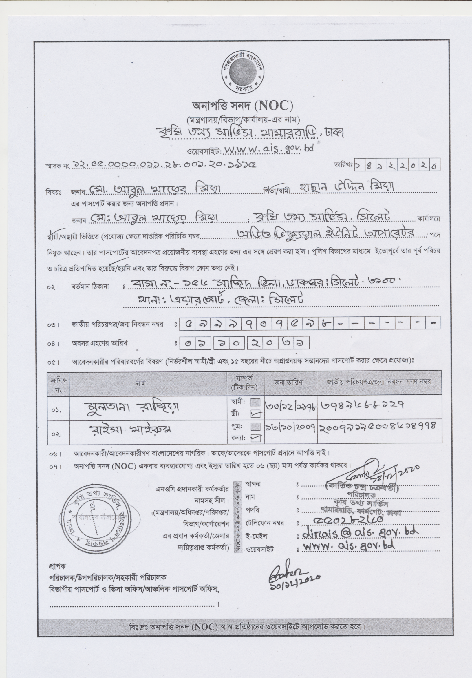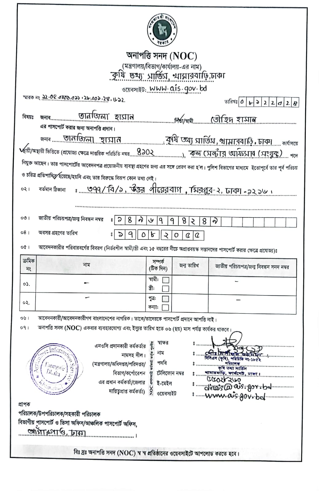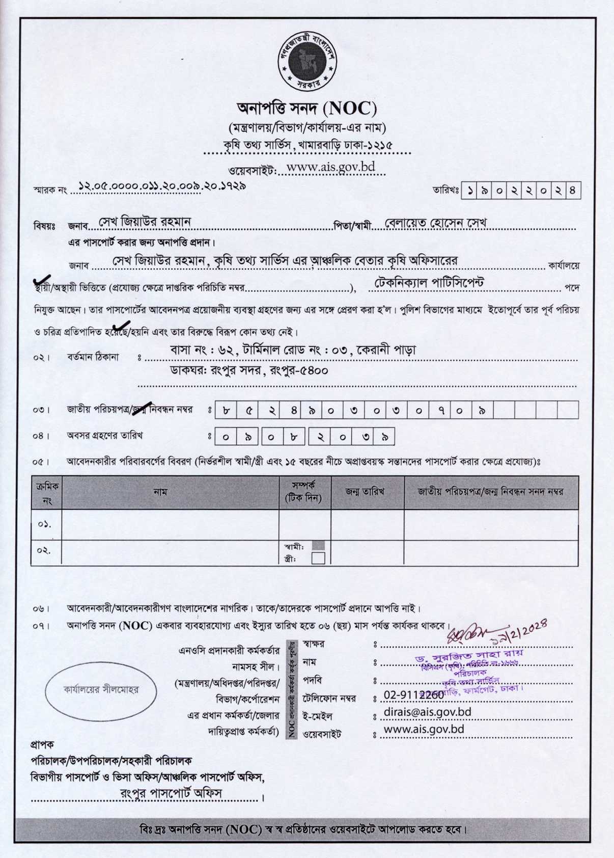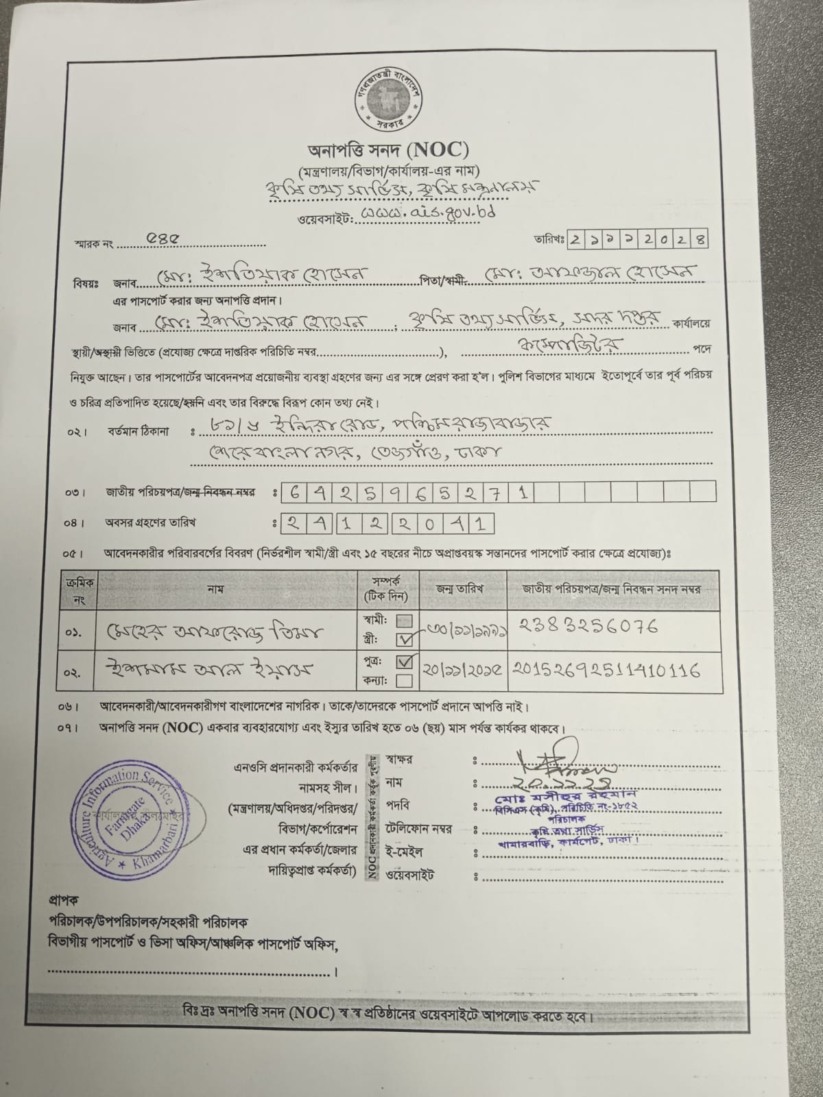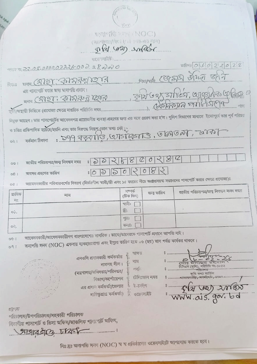 এন ও সি।মোঃ শাহাদাত হোসেন
