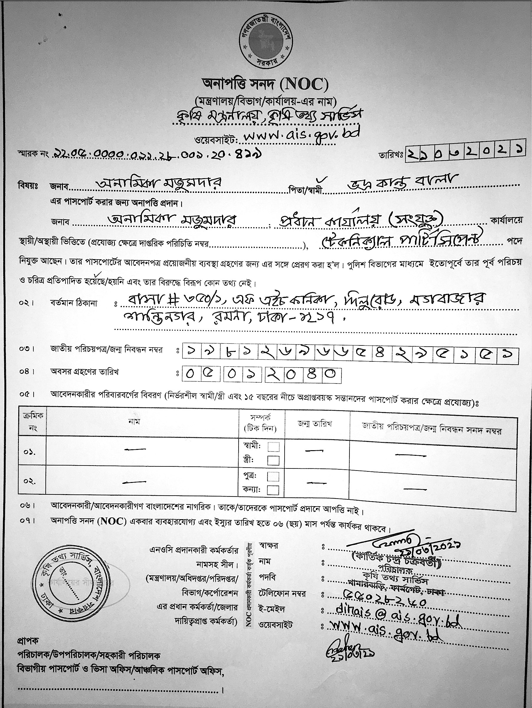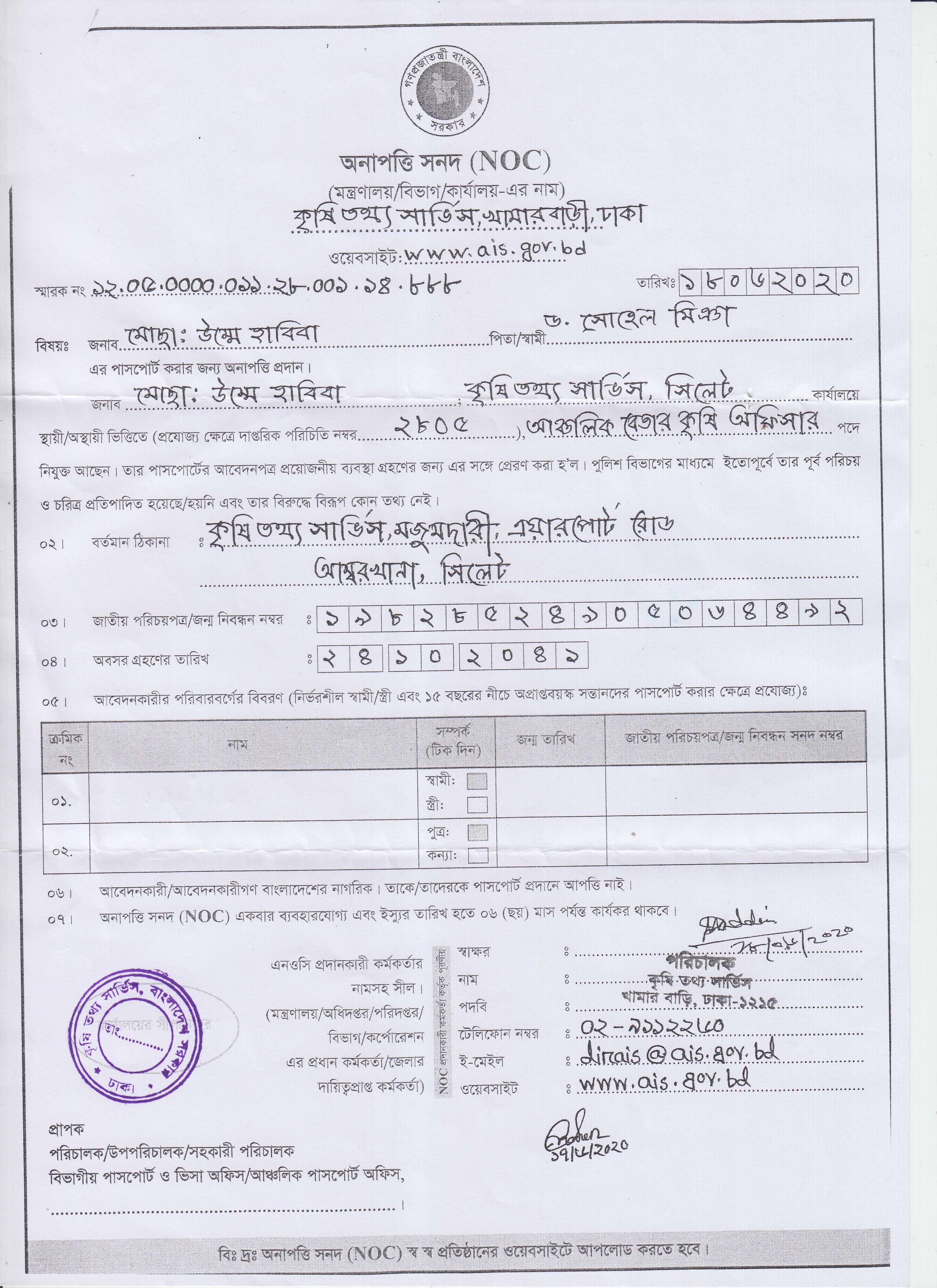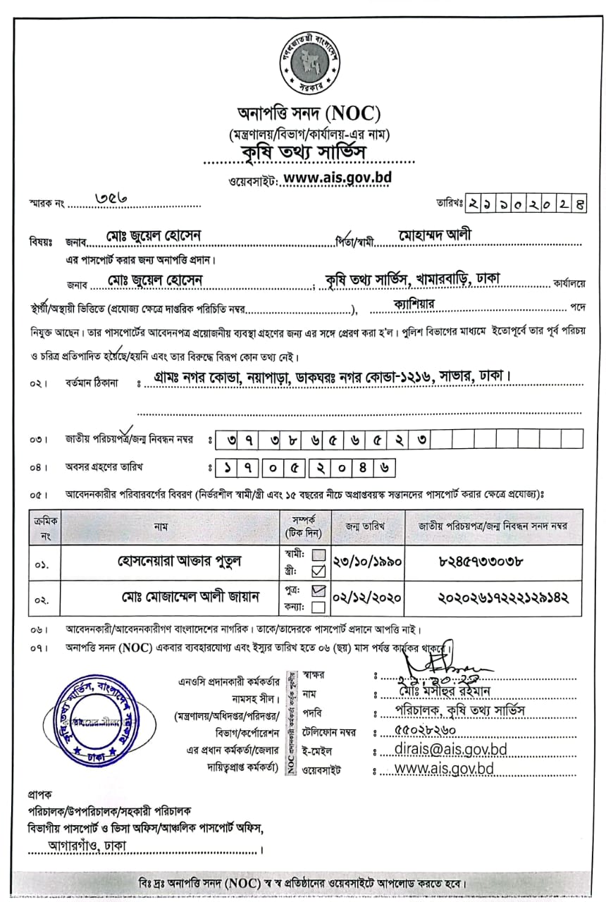 এনওসি (NOC)Abu Kawsar Mohammad Sarwar