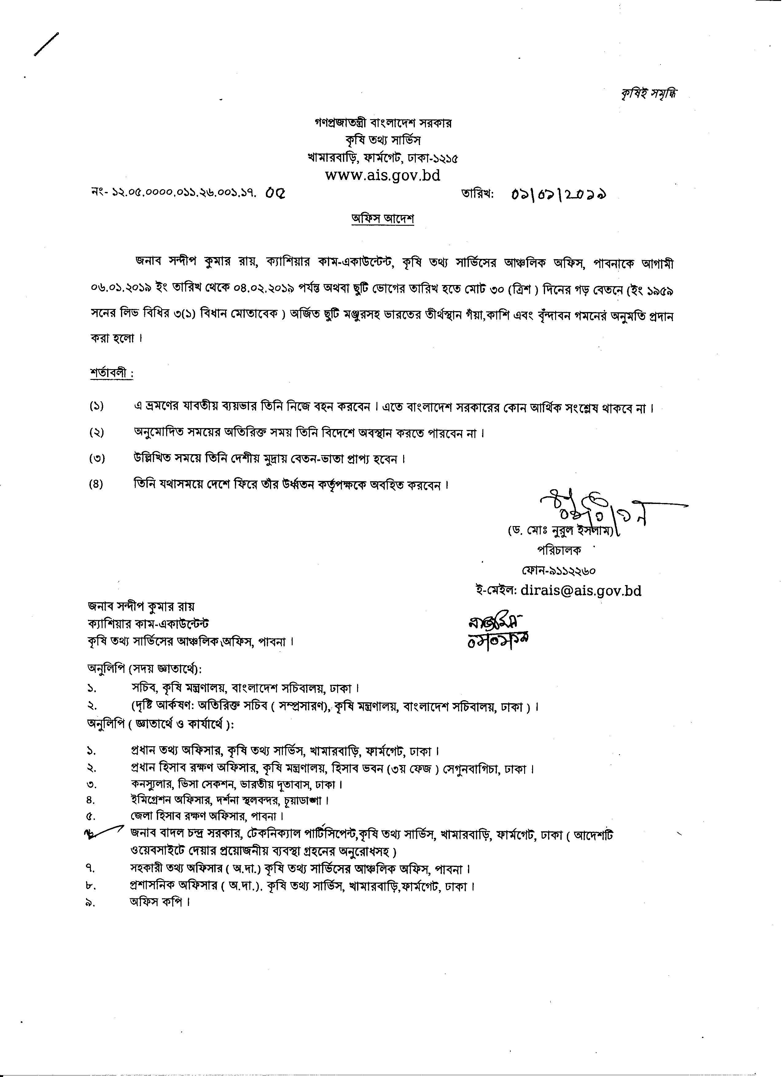 অফিস আদেশ- মাতৃত্বকালীন ছুটি-এখলিমুন নাহার, অফিস সহকারী কাম কম্পিউটার অপারেটর, কৃষি তথ্য সার্ভিস, ঢাকা