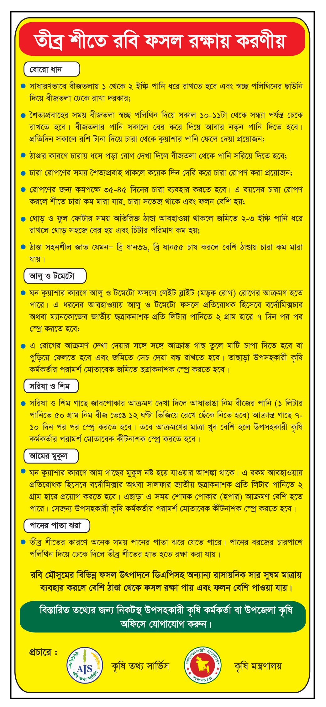 বন্যা ও বন্যা পরবর্তীতে চাষি ভাইদের করণীয়